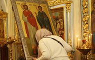 Молебен состоялся в Храме апостолов Петра и Павла в Новой Басманной слободе, где находится икона святых, написанная по заказу Московской городской нотариальной палаты.