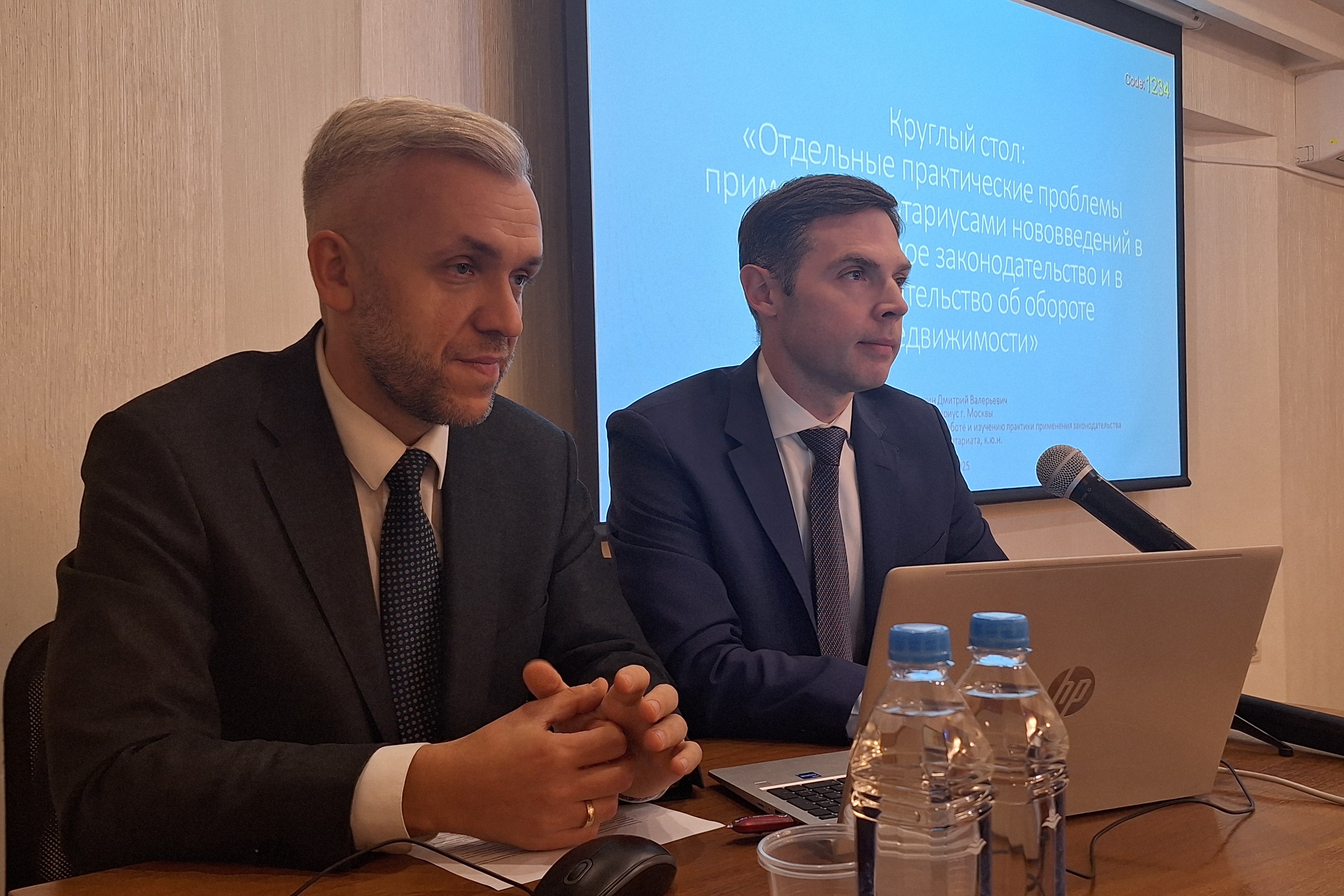 Спикерами круглого стола выступили нотариусы г. Москвы: председатель Комиссии МГНП по методической работе и изучению практики применения законодательства в сфере нотариата Дмитрий Точкин и его заместитель Антон Макаров.