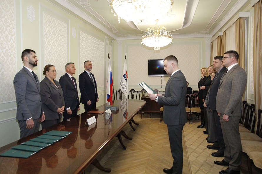 22 января в Московской городской нотариальной палате состоялась торжественная церемония принятия присяги нотариусами, назначенными на должность по результатам конкурса, состоявшегося 22-26 декабря 2025 года. На церемонии присутствовали президент МГНП Константин Корсик, и.о. начальника Главного управления Минюста России по Москве Маргарита Мезенцева, управляющий делами МГНП Дмитрий Истратов, начальник отдела по вопросам адвокатуры, нотариата, государственной регистрации актов гражданского состояния Главного управления Минюста России по Москве Эмиль Валеев.